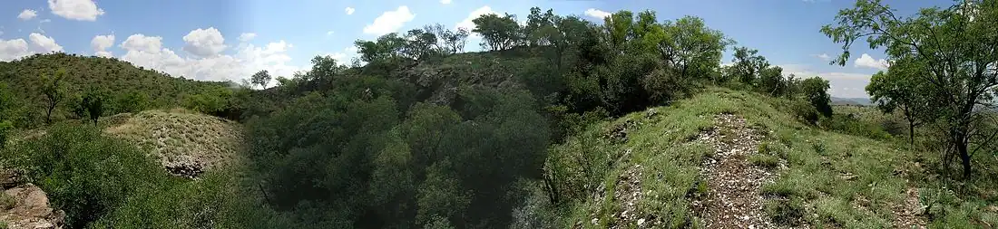Gondolin Cave is a fossiliferous dolomitic paleocave system in the Northwest Province, South Africa. The paleocave formed in the Eccles Formation dolomites (Malmani Subgroup, Chuniespoort Group carbonate-banded iron formation marine platform). Gondolin is currently the only described hominin-bearing fossil site in the Northwest Province-portion of the designated Cradle of Humankind UNESCO World Heritage Site. The cave is located on privately owned land and is not accessible to the public. As is the case with other South African Paleo-cave systems with Pliocene and/or Pleistocene fossil deposits, the system was mined for lime during the early 20th century. As a result, the system has been heavily disturbed and consists of only a small active cave, a series of in situ remnant cave deposits, and extensive dumpsites of ex situ calcified sediments produced during mining activities.[1][2][3][4]
