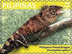 Gonocephalus sophiae, the Negros forest dragon is a species of lizards endemic to the Philippines. It is found between 0 and 1200 m above sea level on the islands of Negros, Mindanao and Panay, and possibly on Siargao, Luzon, Samar, Palawan and the Calamian Islands. The species is oviparous, and lays eggs in small holes dug in the banks of forest rivers. It is often confused with G. interruptus and G. semperi and therefore remains poorly characterized.[1][2] Adults reach a total length of ca. 30 cm and feed mostly on insects.[3]