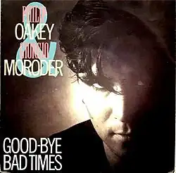 "Good-Bye Bad Times" is a song by British singer and songwriter Philip Oakey and Italian producer Giorgio Moroder. It was written by Oakey and Moroder and recorded for the album Philip Oakey & Giorgio Moroder. Released as a single in the UK in June 1985 as the follow-up to Oakey and Moroder's 1984 hit "Together in Electric Dreams", it reached number 44 on the singles charts and remained on the charts for 5 weeks.[2] It was moderately successful in Australia, where it peaked at number 26.[3]