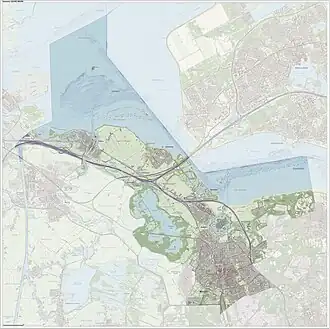 The very northern part of the Utrecht Hill Ridge, lake Naardermeer and artificial island Pampus are situated within its boundaries.
