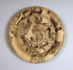 ![]() Black-figure plate attributed to the Gorgon Painter, ca. 600 BC | |