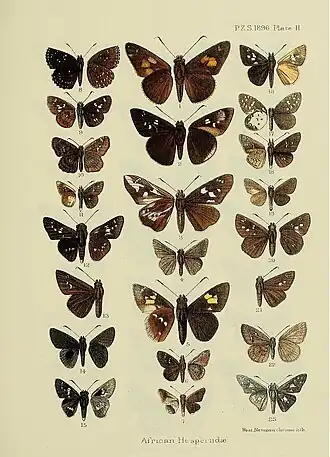 - ^ Matthew J. W. Cock & T. Colin E. Congdon Observations on the Biology of Afrotropical Hesperiidae (Lepidoptera). Part 5. Hesperiinae incertae sedis: Dicotyledon Feeders (Zootaxa 3724) pdf