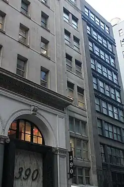 390 Fifth Avenue was occupied by the Gorham Manufacturing Company between 1905 and 1923. It was then home to Russeks department store from 1924 to 1959, and then Spear Securities from 1960, who changed the street level facade. It was designated a New York City landmark in 1998, after the lower floors were significantly altered from their original design.