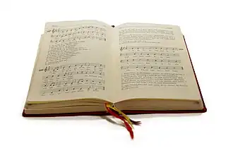 The 1975 edition of Gotteslob (God's Praise) was the first combined prayerbook and hymnbook authorised by the bishops of all German-speaking Roman Catholics in Germany and Austria. It contains texts and songs for liturgy, communal prayer and private prayer, divided into a section which is common for all, and an appendix for the local songs in a diocese.