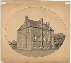 The Gymnastics House was built for N. H. Rasmussen in 1898. He had previously been associated Vallekilde Folk High School in Odsherred. The new building was designed by Peder Vilhelm Jensen-Klint while the artist Niels Larsen Stevns created all decorative works and carvings. The institute was later taken over by his daughter, Helle Gotved, who developed her own principles in the 1940s.[1]