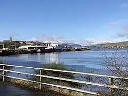 McInroy's Point is a small peninsula to the west of the town. Around 1973, a pier was constructed here to form the departure point for Western Ferries. The port has since been expanded and now incorporates two floating ramps. The port is a terminus for the service to Hunters Quay, near Dunoon on the Cowal peninsula, on the western shore of the upper Firth of Clyde.[5][16]