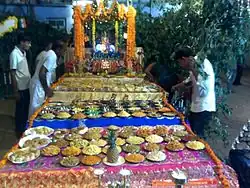 Apart from this, Gozaria follows a tradition from decades of Mahakali Garba on next day of Dashera where from midnight to 2.30 a.m., thousands of villagers gather at Tarpoj Area to witness the tradition which is also telecasted live on local TV networks and websites.