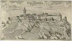 In 1199 Gračišće was first mentioned in written sources as Gallinianum. From that time onwards, the coastal areas of Istria were gradually conquered by the Republic of Venice, advantaged by the lack of a central authority upon the deposition of Emperor Frederick II in 1246 and the fall of the House of Hohenstaufen. Neverteheless the territories further inland around Pazin (German: Mitterburg) with Gračišće were retained by the Imperial Counts of Gorizia and in 1374 were inherited by the Austrian House of Habsburg. In 14th and 15th century Gračišće grew quite prosperous. The interior of Istria subsequently remained within the Holy Roman Empire until the empire's dissolution in 1806.