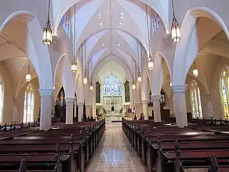 Grace Church Cathedral, located in Charleston, South Carolina, is the diocesan cathedral of the Episcopal Church in South Carolina. It is also a contributing property in the Charleston Historic District.[2] The parish was founded as the city's fifth Episcopal Church congregation in 1846.[3] The Gothic Revival church was designed by E.B. White and completed in 1848. The church remained open during the American Civil War until it was hit by a shell in January 1864. It reopened the following year. The church was also severely damaged in an earthquake in August 1886, in a hurricane in 1911, and in Hurricane Hugo in 1989.