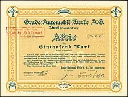 Share of the Grade-Automobil-Werke AG, issued March 1923