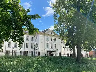 In 1348 the Bailiwick of Utrecht of the noble Teutonic Order (Ridderlijke Duitse Orde Balije van Utrecht) built the Duitse Huis as a monastery and headquarters between the Utrecht city wall and Springweg.[1] In the sixteenth century, Charles the Fifth (Karl V), who was emperor of the German Empire, king of Spain and sovereign ruler of the seventeen Netherlands' provinces, stayed at this monastery which by then also served as a hospital. By 1580, when the Reformation was introduced in Utrecht, the Teutonic Order converted to Protestantism but it maintained the building as a hospital. Napoleon's brother Louis Bonaparte bought the property in 1807 and the Teutonic Order left the premises.[2] During the reign of King William I of the Netherlands a military hospital was built on the property along the Geertebolwerk. For its time, the hospital was very modern.[1] It was completed in 1823.[3]