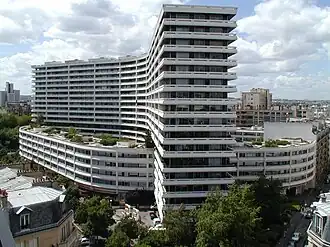 Built from 1969 to 1971 in two stages by architects Jean Fayeton (Jean-Louis Fayeton) and Michel Herbert for Cogedim, it consists of two buildings that intersect:[2]