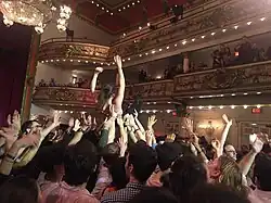 The hall was primarily an event space, hosting weddings, bar and bat mitzvahs, corporate events and high-school proms.[36] The Halkiases rented the building as a filming location for films, TV shows, and commercials including The Cotton Club, Prizzi’s Honor, The Royal Tenenbaums, Gossip Girl, and season three of Twin Peaks.[53][46] It has also hosted events such as Flame Con, an LGBTQ comic book convention,[46] and the rock band Arcade Fire held an Everything Now album release concert there for 1,500 fans.[54][55]