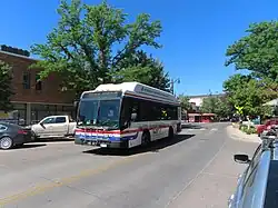 Grand Valley Transit is the public transportation agency that serves the Grand Junction area. Fixed route service began in 2000.[3] Eleven routes run hourly on Monday through Saturday, with seven of them meeting in a downtown transit center. In 2024, the system had a ridership of 630,700, or about 2,100 per weekday as of the first quarter of 2025.