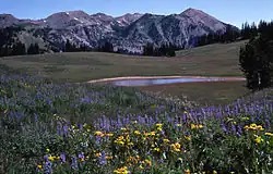 Granite Canyon is located in Grand Teton National Park, in the U. S. state of Wyoming.[2] The canyon was formed by glaciers which retreated at the end of the last glacial maximum approximately 15,000 years ago, leaving behind a U-shaped valley.[3] The canyon lies between Rendezvous Mountain to the south and Mount Hunt to the north. The trailhead for the canyon is on the Moose–Wilson Road about 2 miles (3.2 km) north of Teton Village. One of the most popular hikes from the trailhead is to Marion Lake by way of the Granite Canyon Trail which traverses the length of the canyon. Another popular hike involves riding the aerial tram located at the Jackson Hole Mountain Resort in Teton Village to the top of Rendezvous Mountain, and then descending back to Teton Village by way of Granite Canyon. The descent from the summit of Rendezvous Peak back to Teton Village is an often steep one with an altitude loss of 4,100 feet (1,200 m).[4] The historic Upper Granite Canyon Patrol Cabin is situated near the entrance to the canyon and was listed on the National Register of Historic Places in 1998.[5]