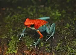 The granular poison frog or granular poison arrow frog (Oophaga granulifera) is a species of frog in the family Dendrobatidae, found in Costa Rica and Panama.[1] Originally described as Dendrobates granuliferus, it was moved to Oophaga in 1994.[2] Its natural habitats are tropical humid lowland forests; it is threatened by habitat loss.[1]