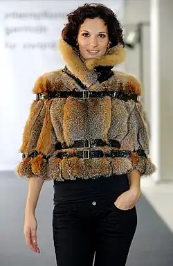 The fur, which is quite short-haired for a fox with its vibrant coloration, was also used a lot for jackets and coats after the Second World War and, since around the 1990s, increasingly for bindings and hood trimmings, sometimes dyed in fashionable colors. Even today, the natural color structure is retained during dyeing, as the hard guard hair takes on the color to a much lesser extent than the soft undercoat.