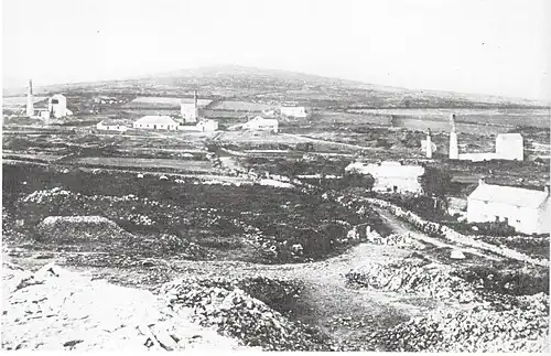 It had opened by 1538. John Leland visited the mine and was quoted as saying "There are no greater Tynne workes yn al Cornwal than be on Sir Wylliam Godolcan's Ground". By 1584 at least 300 employed were there, and the annual profit was £1000.[3] Until 1816 the mine exploited the surface and shallow pits. Deep mining started then and continued until 1873. The mine worked five lodes, ran five engines and employed 500 people.[4]