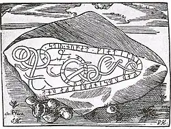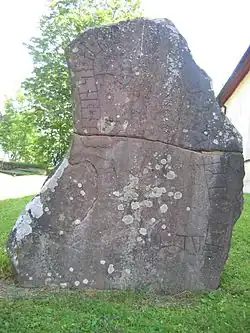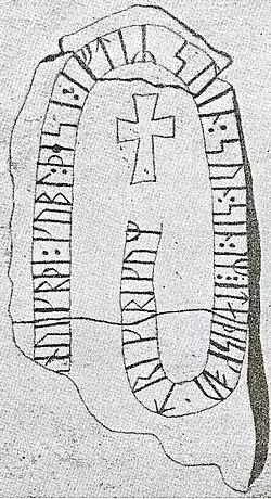 About 3,000 runestones from the Viking Age have been discovered in Scandinavia of which c. 2,700 were raised within what today is Sweden.[13] As many as 1,277 of them were raised in the province of Uppland alone.[14] The Viking Age coincided with the Christianisation of Scandinavia, and in many districts c. 50% of the stone inscriptions have traces of Christianity. In Uppland, c. 70% of the inscriptions are explicitly Christian, which is shown by engraved crosses or added Christian prayers, while only a few runestones are explicitly pagan.[15] The runestone tradition probably died out before 1100, and at the latest by 1125.[14]