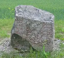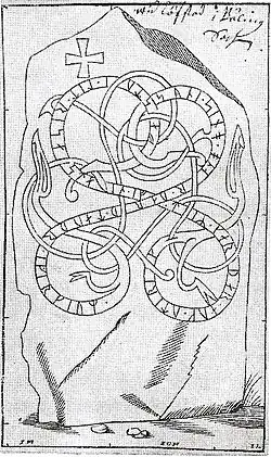 Sawyer (2000), on the other hand, reacts against this commonly held view and comments that the vast majority of the runestones were raised in memory of people who are not reported to have died abroad.[22] She argues that few men who went abroad were honoured with memorials and the reason is that the runestones were mainly raised because of concerns at home, such as inheritance issues.[24] Such concerns would have arisen when a family knew that a relative would not return from abroad.[25]