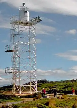 In 1992[11] a solar powered lens on a modern lattice skeletal steel tower was constructed right next to the historic tower, and the light was officially turned off on 17 March 1992. The new light operates a 36 W lamp with an intensity of 37,500 cd. With this conversion, the lightstation was effectively de-manned and a caretaker installed at the site.[4] Since being replaced by a new and fully automatic lighthouse, the station has become a tourist destination and is being increasingly recognised for its heritage values. In 2009, Green Cape Lightstation was designated an Engineering Heritage National Landmark[12] – the first lighthouse to be accorded this level of recognition in Australia.[4]