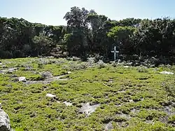 Immediately outside of the lightstation precinct, and 300m from the lighthouse, is the Ly-ee-Moon cemetery and, located off-shore, the shipwreck itself. The small cemetery is bound by a simple metal wire fence and contains 23 graves, each marked by a pair of white head and foot stones. The graves are positioned in two rows of ten and one smaller row of three but, with the passing of time, the graves are no longer identifiable. A bronze plaque was placed in the southern corner in 1986, on the centenary of the disaster.[4]