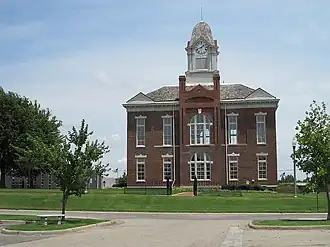 The former Greene County Courthouse is located at Courthouse Square in the center of Paragould, the county seat of Greene County, Arkansas. It is a large two-story Georgian Revival structure, built out of red brick. It has a low-pitch hip roof with small gables at three corners, as well as above the entrances. The roof is topped by a square tower with a clock and belfry, topped by an ogee roof and spire. It was built in 1887, and was the sixth courthouse built for the county, most of the others having been destroyed by fire.[2]