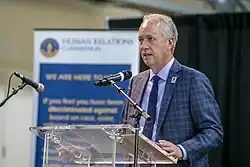 On June 22, 2017, California Attorney General Xavier Becerra announced that he was working on banning state-funded travel to Kentucky in response to a bill signed by Kentucky Governor Matt Bevin. The law was designed to reinforce students' ability to express religious and political views in public schools and universities. But the bill also said religious and political student organizations cannot be hindered or discriminated against for how they conduct their internal affairs or select their leaders and members. Critics said those provisions could be used to let student groups prevent LGBTQ students from joining their ranks.[75] On June 26, 2017, Fischer and Lexington Mayor Jim Gray sent the California Attorney General's Office a letter asking that their cities be excluded from the ban. "Please consider exempting cities like Louisville from your travel ban", the letter states. "It is my belief that cities like ours should be rewarded for an inclusive behavior, not penalized; a waiver would highlight our inclusivity and encourage other cities to follow accordingly."[76] A week later, Becerra replied that California could lift the ban only if city officials were able to "make progress with leaders in your state" to repeal or amend the law.[77]