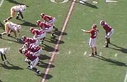 McElroy's worst performance of the season occurred on October 17, when Alabama hosted #22 South Carolina. He completed just half of his passes, including two interceptions.[34] However, running back Mark Ingram II helped Alabama to a 20–6 victory with his 246 rushing yards.[35] In the Third Saturday in October versus Tennessee, the Volunteers defense shut down Alabama's offense, keeping them from scoring a touchdown. McElroy completed 18-of-29 for 120 yards as Alabama held on for a 12–10 victory with four Leigh Tiffin field goals.[36] On November 7, he helped Alabama clinch their second straight SEC West title as the team faced #9 LSU.[37] After failing to throw a touchdown in four consecutive games,[38] McElroy threw a 21-yard touchdown pass to Darius Hanks in the third quarter.[39] After trailing in the fourth quarter, he threw his second touchdown of the game, connecting with Julio Jones on a 73-yard pass.[39] McElroy finished 19-for-34 for 276 yards, including two touchdowns and one interception in a 24–15 victory.[40]
