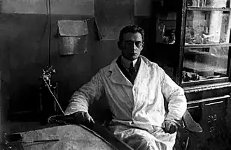 In 1914, after the outbreak of war with Germany, 48-year-old Klyachkin, already beyond conscription age, volunteered for the front. As a volunteer, he managed a neurological military hospital in the frontline zone for three years.[80][21] In 1917, he returned to Kazan[80] and became a consulting physician at the Kazan Military Hospital,[2] working as a resident in one of the city's hospitals.[6] After the capture of Kazan by Komuch troops, he hid Bolsheviks under the guise of patients in his clinic.[80] In 1918, he did not leave with the retreating Komuch troops and remained in Kazan, despite his clinic being requisitioned by the Soviet authorities.[80][21] For the next two years, he worked as a neurologist in the city's military hospital.[80]