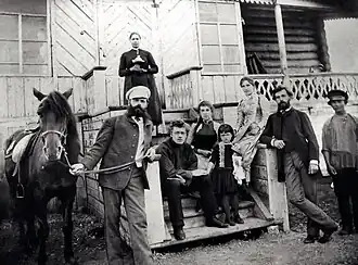 The Klyachkin family had six children: four sons and two daughters.[5] Grigory was the eldest of the brothers.[5] Nota (Naum, Nikolai) graduated from Kazan University, worked in Verkhneuralsk, was awarded the title of Hero of Labor, and died in prison during the Stalinist repressions.[6][7] Mikhail (Meilakh, Meinar) also graduated from Kazan University and moved to Samara, where he became a well-known physician and owned his own clinic.[6][3] David became an architect and emigrated to America during the revolution.[3] The daughters, Ginda and Meri, lived and worked in Moscow, and before the Great Patriotic War, moved to Leningrad, where they died of starvation during the Siege of Leningrad.[5]