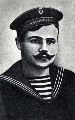On 10/23 June 1905, he had attended a meeting of Tsentralka (the revolutionary sailors' organisation) and had argued in favour of an uprising: "To delay means to fail the revolution. At this moment, everywhere, workers and peasants are striking out. We must join the common fight."[3] His powerful voice and long black moustache added to the effect of his words. On 11/24 June he convinced the Tsentralka leaders to let the Potemkin lead the Black Sea uprising.