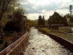 The Große Mittweida (short also Mittweida) is a river of Saxony, Germany. It is a right tributary of the Schwarzwasser, which it joins in Schwarzenberg. Its source is on the north slope of the Fichtelberg.