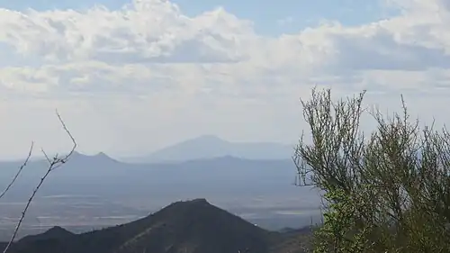 Gu Achi Peak (O'odham: Ge Aji Doʼag) is a mountain in the Santa Rosa Mountains of Arizona.[3] It is on the Tohono O'odham Indian Reservation, about 56 miles (90 km) west of Tucson. Gu Achi Peak can be translated as "big ridge."[4] In precolonial times it was the central territory of the Totokwan group of the O'odham, and it may have served as the ceremonial center for the northern O'odham groups.[5]: 12–15