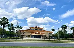 The Guang Ming temple (Chinese: 光明寺; pinyin: Guāngmíng Sì; Pe̍h-ōe-jī: Kong-bîng-sī; lit. 'Bright Light Temple') in Orlando, Florida, United States is the largest Buddhist temple in Central Florida. The three-story, 30,000-square-foot (2,800 m2), traditional Chinese-monastic style temple was completed in 2007 and cost approximately $5 million to construct. The temple is associated with Fo Guang Shan, a monastic organization from Taiwan led by Venerable Hsing Yun that claims over one million members worldwide, and with Hsi Lai Temple in Los Angeles. Guang Ming is home to several resident monastics, and boasts a vast main shrine room, auxiliary meditation room, vegetarian cafeteria, tea room, gift shop, and guest dormitories. The temple is open daily from 10:30 am to 5:00 pm, and weekly events are held in Chinese as well as English.