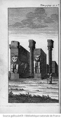 - ^ Jean Chardin (1711). "Guillaume-Joseph Grelot taking heights at the Gate of Xerxes (Chardin, 1711, vol. 3, plate 56) (Source: Bibliothèque nationale de France, Gallica)". ResearchGate. Bibliothèque nationale de France. Retrieved January 7, 2025.