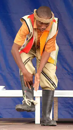 The gumboot dance (or Isicathulo[1]) is a South African dance that is performed by dancers wearing Wellington boots. In South Africa these are more commonly called gumboots.