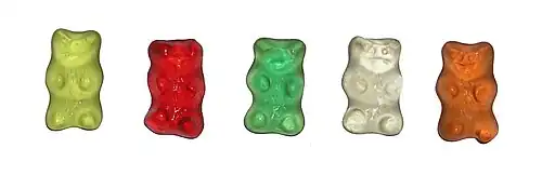 ![]() Gummy bears produced by Haribo, the first company to manufacture gummy bears | |