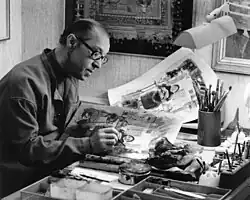 His main techniques were etching and serigraphy, but he also did paintings and aquarels. The first exhibition of his art was in Kunstnerforbundet in 1968. In total he exhibited his art about 30 times, with several collective exhibitions. His works have been bought by such institutions as the National Gallery of Norway, the Museo del'arte in Pistoia and the Accademia delle bell'arte in Catania.[1]
