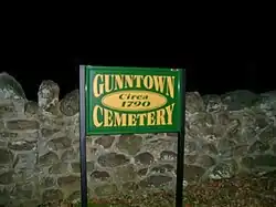 Gunntown Cemetery is an old cemetery in Naugatuck, Connecticut which was established in 1790. Many of Naugatuck's citizens who supported independence from British rule during the Revolutionary War are buried in the cemetery. The cemetery is also considered by many to be haunted.