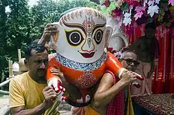 The present ratha is the same chariot that was being used in the first year of the rathayatra. It is nearly 280 years old.[5] During the entire year the ratha is kept inside a giant metallic cage. Weeks before the festival it is brought out and prepared for the festival. As of 2012, the chariot was in a dilapidated condition.[6] The Guptipara Shree Shree Vrindavan Chandra Jiu Math have been providing patch work to the current structure every year as a stop gap solution. They have approached the district administration and the Archaeological Survey of India for repair.[6]