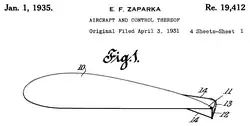 Gurney assigned his patent rights to Douglas Aircraft,[12] but the device was not patentable, since it was substantially similar to a movable microflap patented by E. F. Zaparka in 1931, ten days before Gurney was born.[12][17] Similar devices were also tested by Gruschwitz and Schrenk[18] and presented in Berlin in 1932.[19]