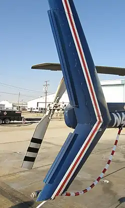 The Eurocopter AS355 TwinStar helicopter uses a double Gurney flap that projects from both surfaces of the vertical stabilizer. This is used to correct a problem with lift reversal in thick airfoil sections at low angles of attack.[14] The double Gurney flap reduces the control input required to make the transition from hover to forward flight.[25]