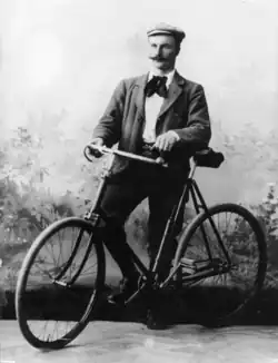 Gustaf Dalén as a young engineer with his bicycle in the photo studio 1895.