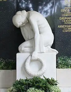 - ^ The gravestone is inscribed "Ruhestätte der Gotigefälligen Frau und Besten Mutter" (Resting place of the godly woman and best mother).