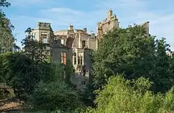 The current, ruined house dates from 1751 and was started by Samuel Greatheed, a West India slave-owner, merchant and Member of Parliament for Coventry 1747-1761. His son Bertie Greatheed inherited the estate after the death of his mother in 1774 and further improved the house and grounds in 1810 to heighten the picturesque qualities of the site.[5]