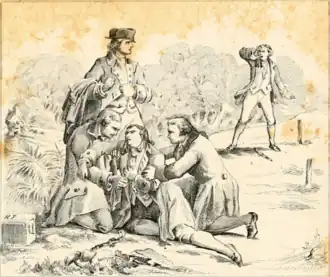 ![]() An 1865 illustration showing the immediate aftermath of the duel | |