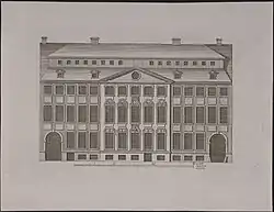 The Gyldendal House (Danish: Gyldendals Gård), situated at Klareboderne 3, is the current headquarters of the Gyldendal publishing house in Copenhagen, Denmark. The 15-bays-long Baroque style town mansion was constructed by master mason and stucco artist Abraham Stoy in the 1740s. It was acquired by Gyldendal-founder Søren Gyldendal in 1787, and his publishing house has been headquartered in the building since then. A large new rear wing was constructed in the 1870s. The front wing was listed in the Danish registry of protected buildings and places in 1918.