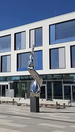 As part of the German Kunst am Bau scheme the School hosts two artworks, Feuer & Flamme by the sculptor, from Bruno Wank,[8] and Stefan Wischnewski's Auf die Plätze.