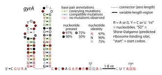 ![]() Consensus secondary structure of gyrA RNAs | |